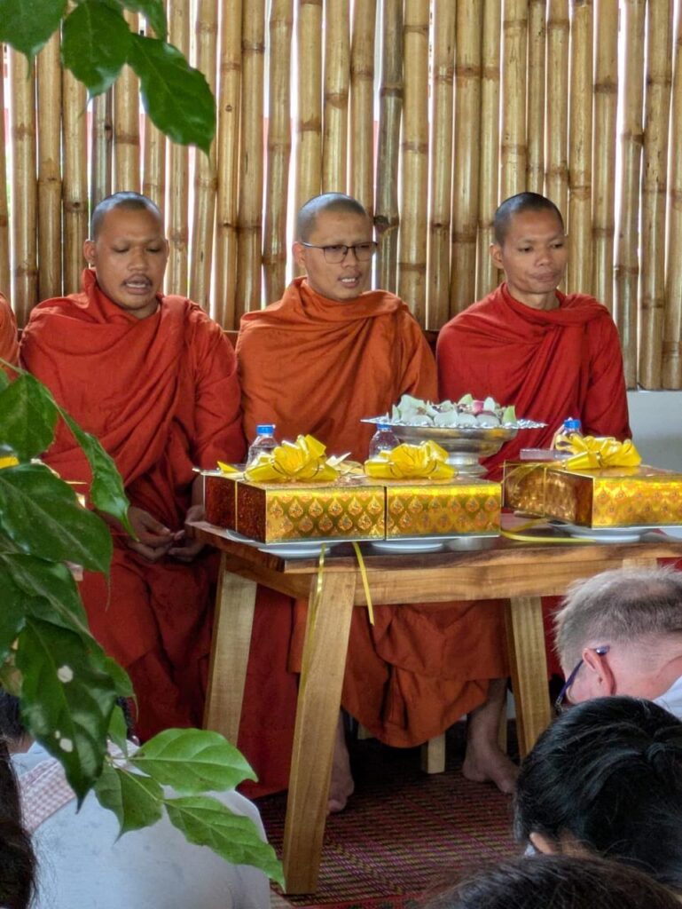 In a beautiful twist of fate, a group of German travelers with Cambodian Travel Partner arrived just in time to witness this sacred ritual. For over an hour, the air was filled with the rhythmic chanting of prayers. We stood together, humbled, as the monks sprinkled us with holy water—a symbolic cleansing and a powerful wish for success and happiness.